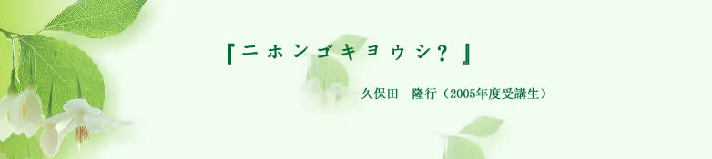 | 講座の受講生は、皆さんそれぞれいろんな経験をお持ちの方ばかりです。そのような方々と、教室活動などを通じ意見交換をしたり、交流を持てたりしたことは貴重な体験でした。その出会いだけをとっても、この講座の受講はとても有意義だったと思えるくらいです。クラスの中では、年齢や経歴の違いなど全く感じられません。もうすぐ講座も終了を迎えます。最近はよくクラスの方とも、「もうすぐ終了してしまうのが寂しく感じる」と言っています。本当にあっと言う間でした!この1年を振り返ると、講座の受講に臨む前と今では、明らかに日本語教師という職業に対する考え方、そして良い意味で、自分自身の今後の人生観が変ってきていることを実感しています。 | ![]() |