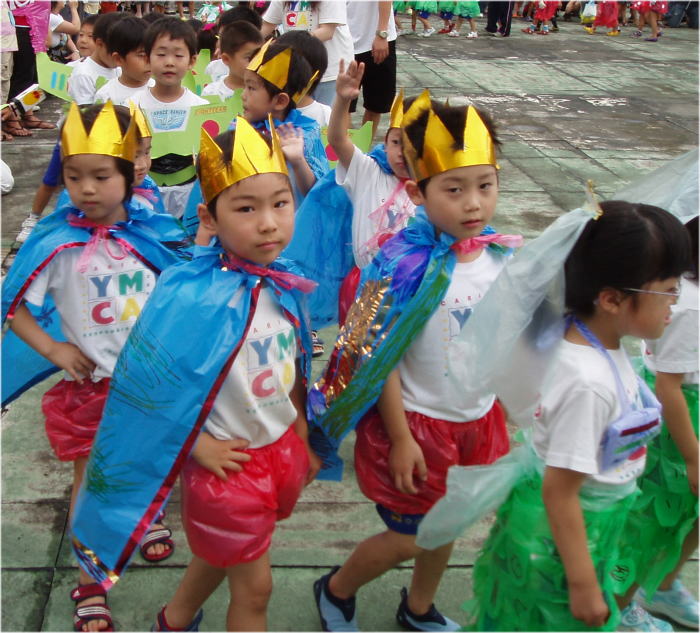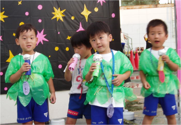 幼児園の1学期最後の大イベントの『なつまつり』は、園長先生が“雨男!?”なのか、小雨まじりの中スタートいたしました。定通り子どもたちのとってもかわいいパレードからスタートし、保護者の皆様のとってもステキなお店に子どもたちも大満足!最後はリーダーたちのステキ!?なパフォーマンスもあり、とっても楽しい1日になりました。保護者の皆様方、本当にありがとうございました。有意義な夏休みを過ごしていただき、また元気な姿を2学期に見せてくださいね。