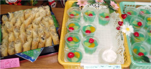 さあ、クリスマスパーティーだよ。各家庭より一品ずつ持ち寄った料理は本当に美味しそうだね。ママたちありがとうございました。