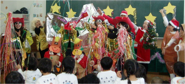 幼児総合幼児園2学期の締めくくりは、恒例となりました『終了式とクリスマスパーティー』です。たくさんの行事の中でも、これほど力の入った(保護者の!)発表会は過去に例がないくらい楽しいものになりました。お友達にはとってもステキなプレゼントになったね。冬休みに入りますが、風邪などひかないよう元気な姿で3学期に来てくださいね。