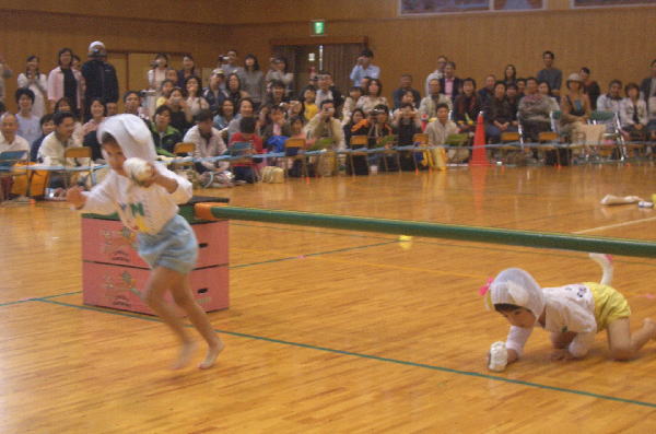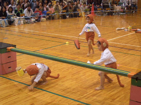 かわいい~でしょ!ヒヨコクラスの“おさるといぬ”の競技です。