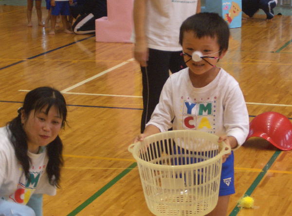 パンダクラスの親子競技です。“たまいれポンポコポン”
