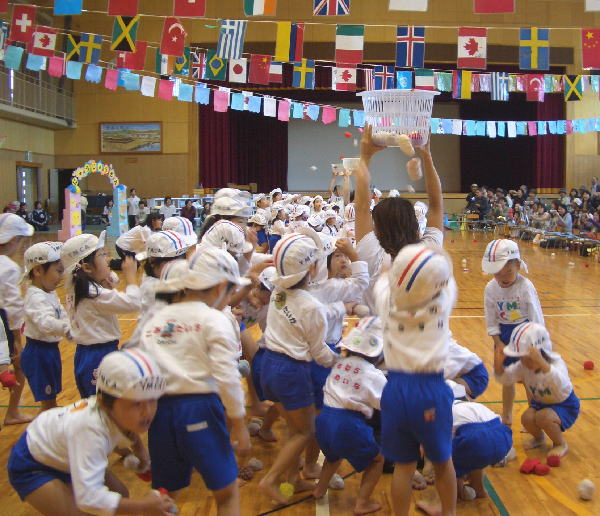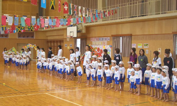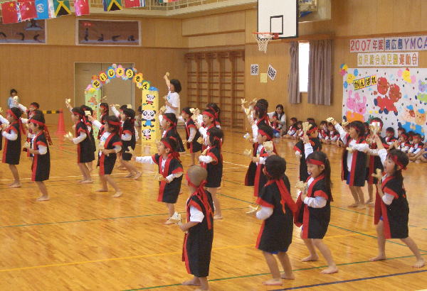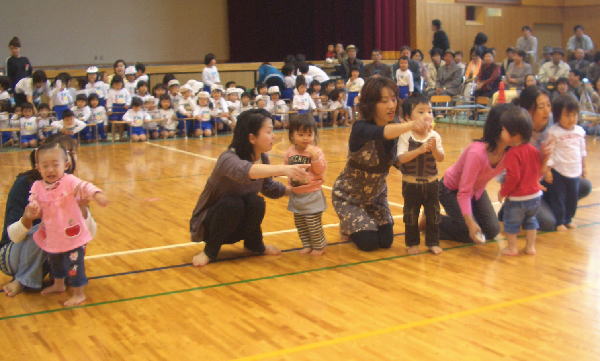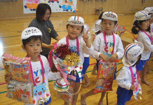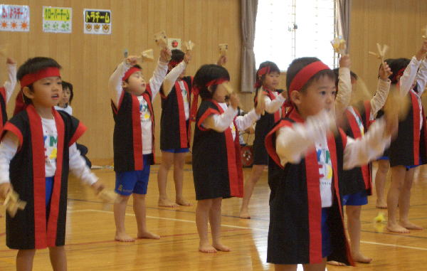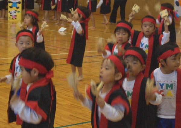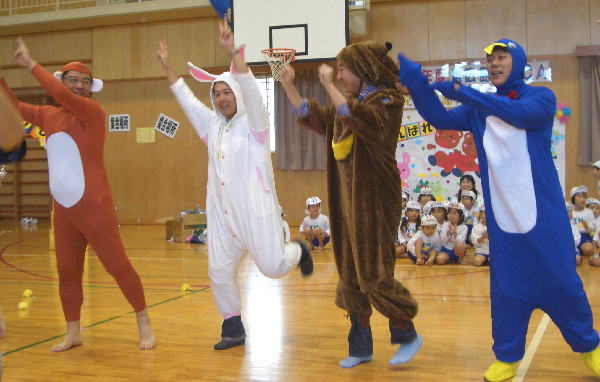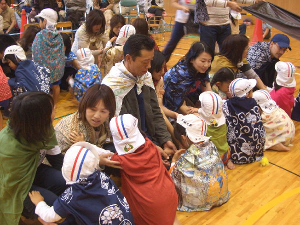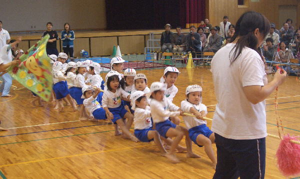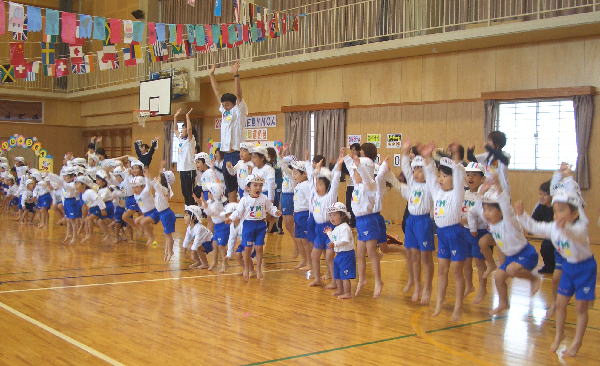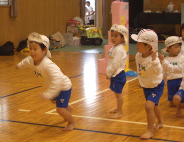 今年の行事は雨が多く、園長先生が雨男!のウワサが広まりましたが、この“うんどうかい”はとっても良い天気で開催することができホッとしています。(室内でしたが…)ご協力いただいた三ツ城小学校・保護者の皆様・リーダーの皆様、本当にありがとうございました。