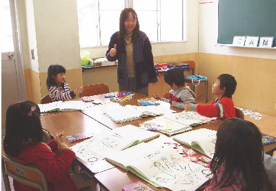 ヒヨコとラッコクラスでは歌やゲームなどを中心に、ネイティブの先生の発音を